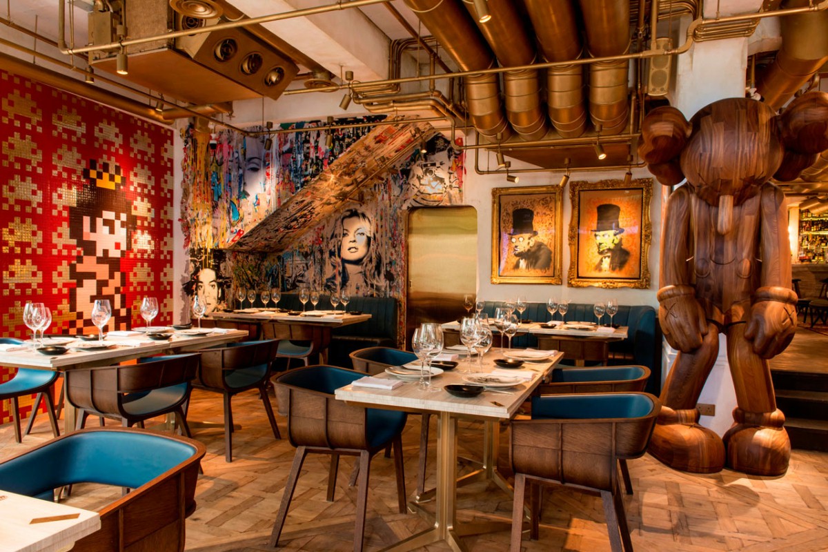 空间装饰艺术, 重新定义低调的奢华,新的历史建筑虚构文化空间历史,金属装饰色彩时尚空间感表达法式浪漫主义情怀,空间设计手法大胆创新有趣愉悦的就餐环境。