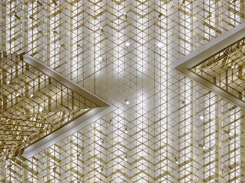 设计理念:前卫创新新概念店。富有质感的室内元素,让顾客感到惊讶。店的金色让整体变得更加高端神秘,符合了品牌的定位。天花板上有钻石形状的图案,设计了商店的流程,引导游客流畅地从一个房间走到另一个房间。白色大理石与金色得搭配,使店内变得明亮起来,给顾客一种舒适的购物体验。