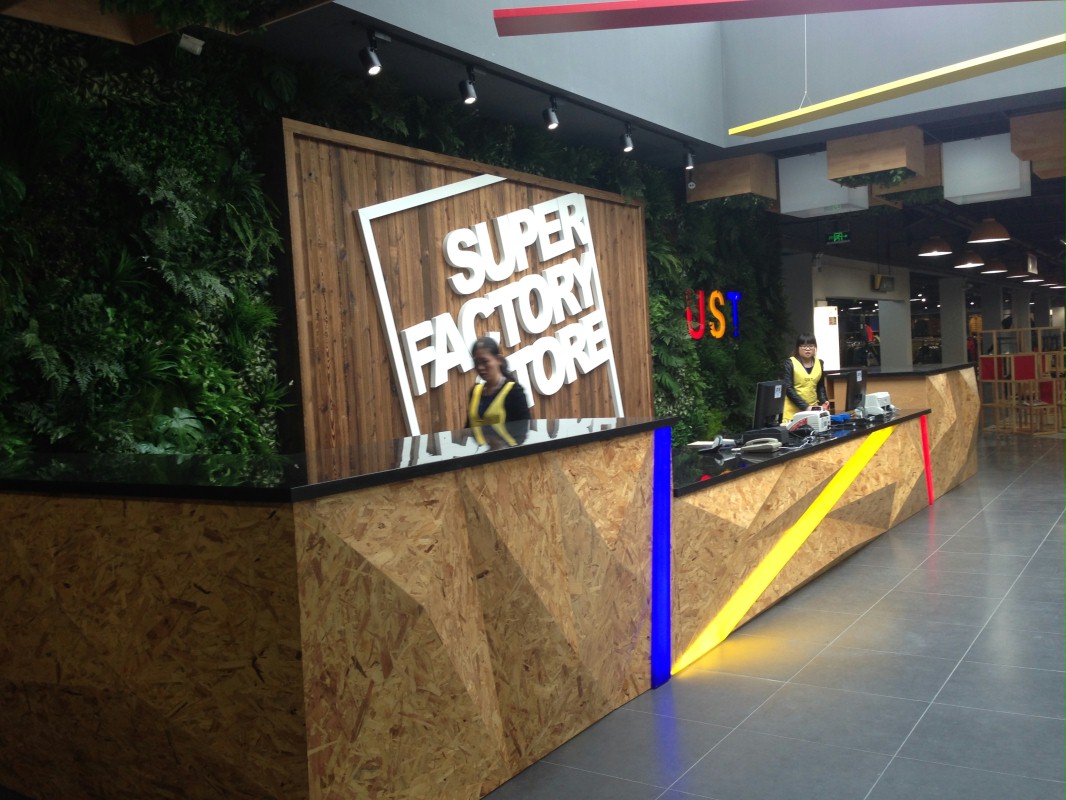 项目5000平位于苏州 卖场超级工厂店,卖场的设计运用色彩分区 形象墙绿植和木色渲染整体空间感,材质主要金属色、彩色烤漆 、水泥板等-卖场平面图,效果图方案,实景照片局部呈现