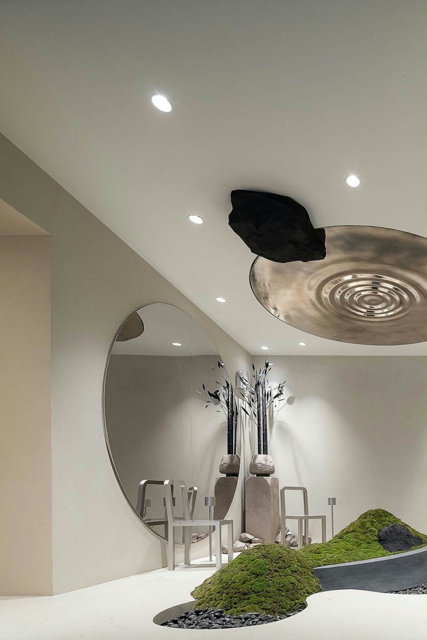 喝茶固然有传统属性,但绝不是一件陈旧的事情,遵循传统糅合现代,对空间进行“折叠”处理。以“茶”为才找灵感,以“友”为媒介,尊重自然,传承人文。室内设计遵从并延续其建筑形制,化繁为简,采用精炼的手法构筑大块面轮廓。通过制造一些戏剧感的细节,让各功能分区合理有序的以递进式铺展开来,充分发挥了建筑与空间的对话作用。同时,将开放互动性贯穿其中以突出店面功能层次感,进一步强化整体感以及开阔度,从而实现空间布局的和谐统一。